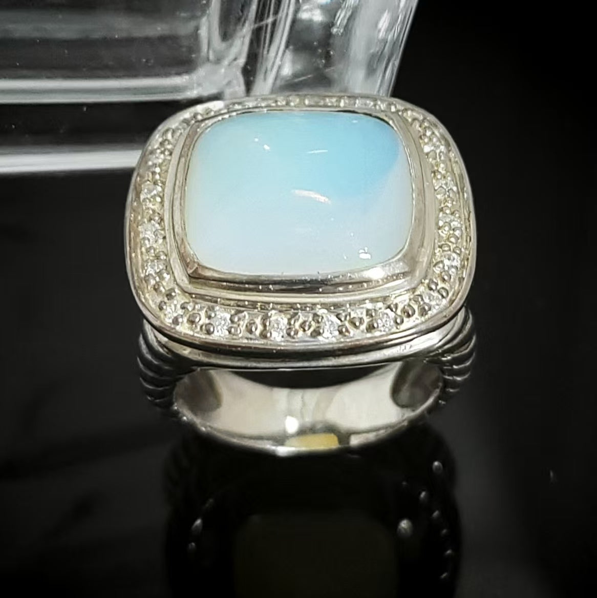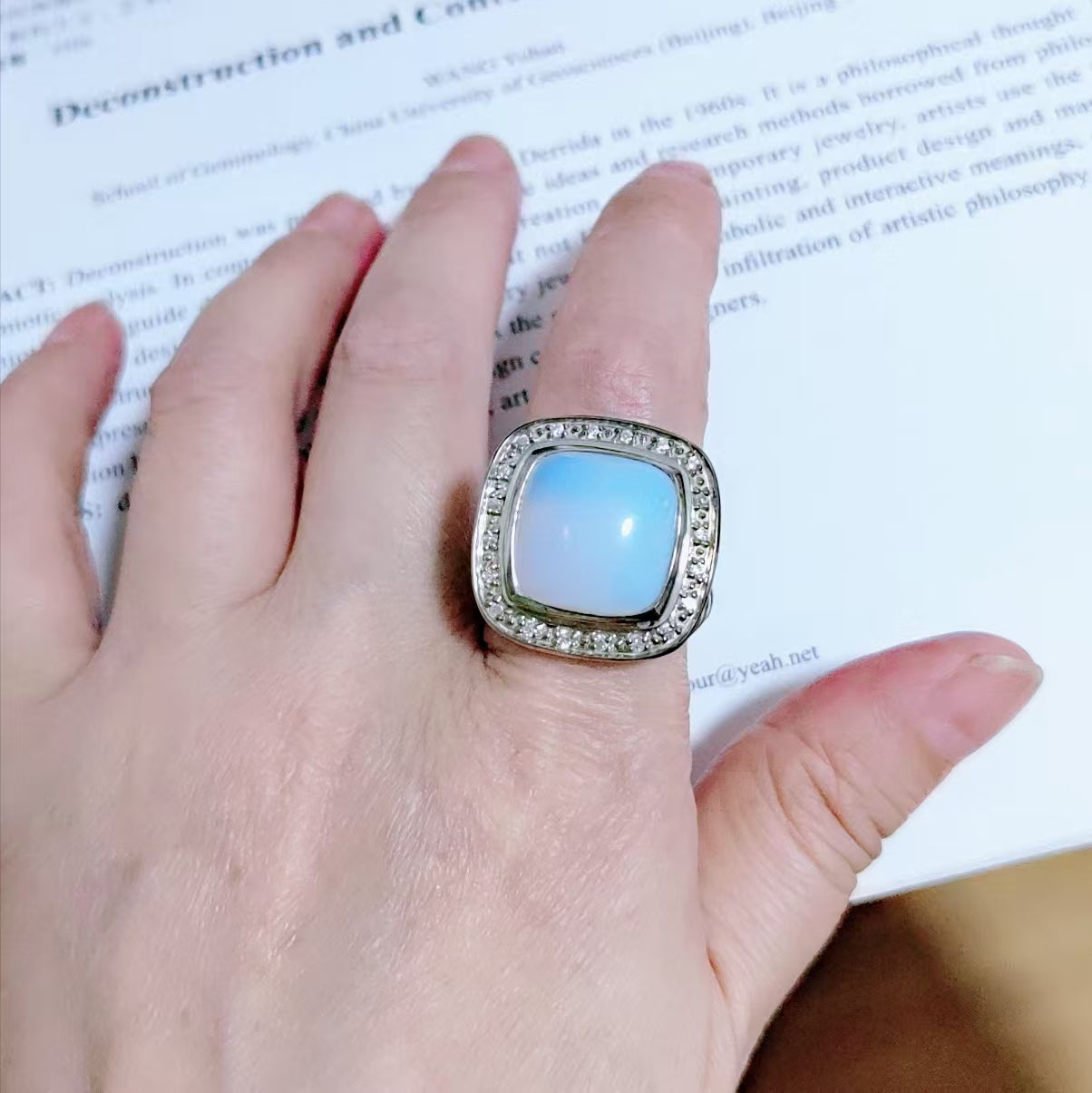 Split Shank Oxidized 925 Sterling Silver Jewelry Cushion Cut 14mm Imitation Moonstone Ring