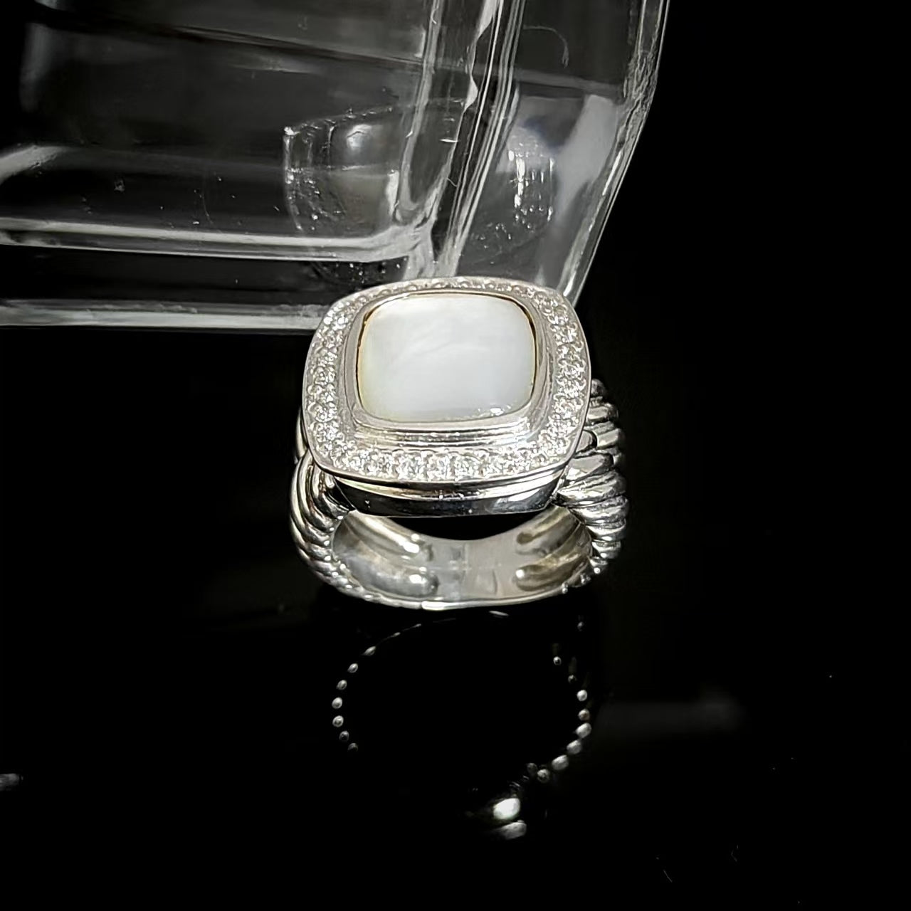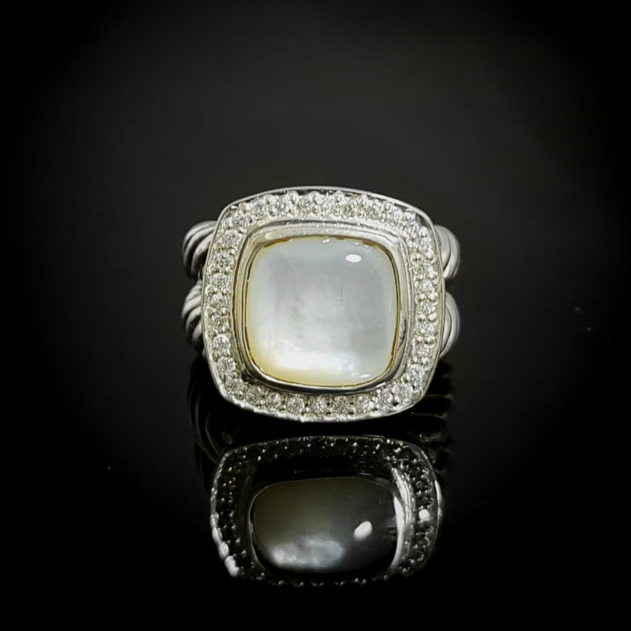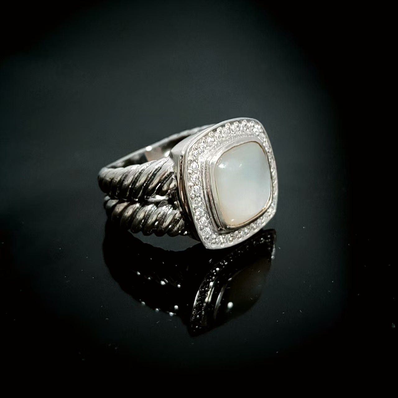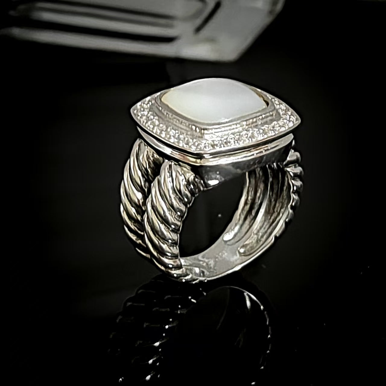 Split Shank Cushion Cut Mother Of Pearl Ring Oxidized 925 Sterling Silver Jewelry