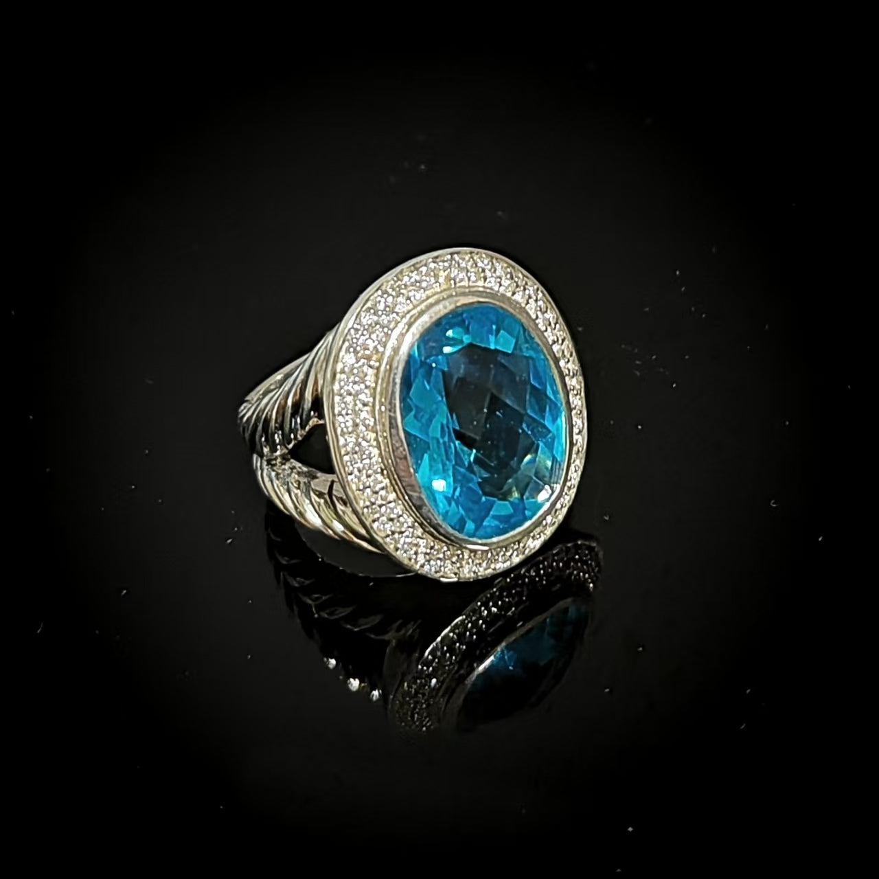 Split Shank Oval Cocktail Ring 925 Sterling Silver With Oval Cubic Zirconia Blue Stone Jewelry
